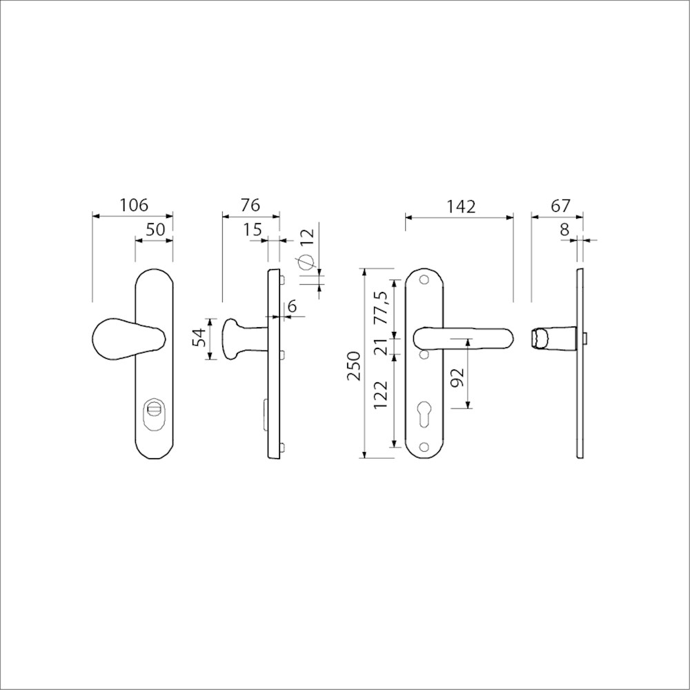 binnenschild 8 mm met deurkruk 378 ROTA verend vastdraaibaar,