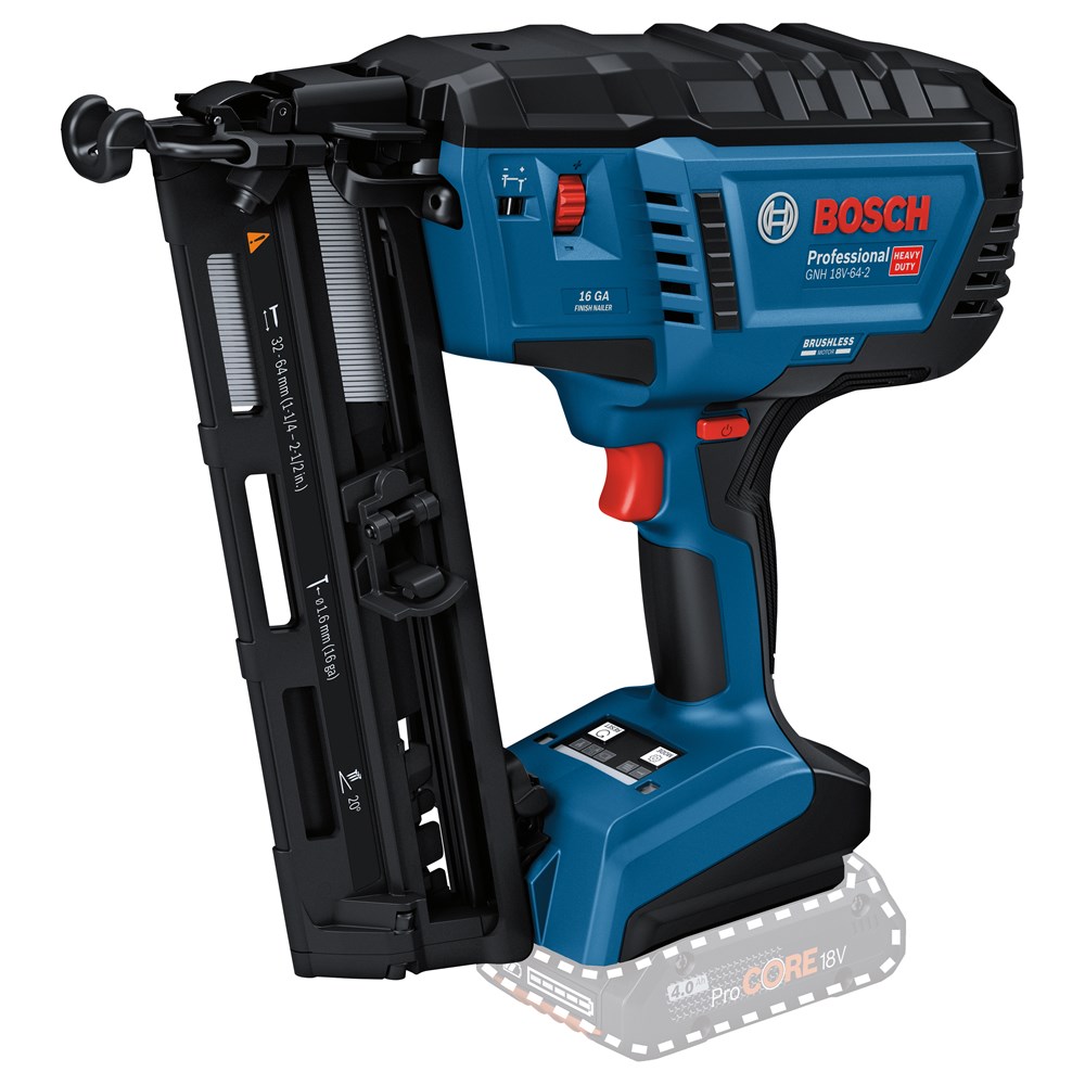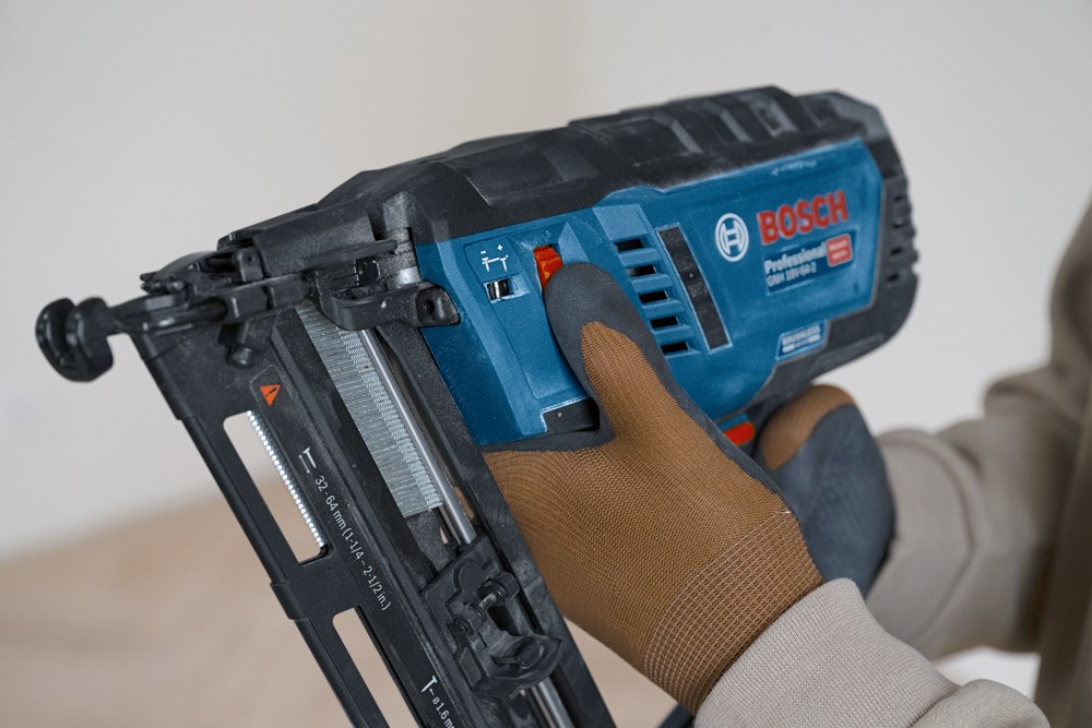 Het is gewenst dat spijkers er op een professionele manier, efficiënt en zonder al te veel belasting van arm en hand erin worden gedreven. We hebben de krachtige, borstelloze GNH 18V-64-2 M Professional met een zeer lage terugslag ontwikkeld, zodat deze de pols ontziet. We hebben er ook voor gezorgd dat de machine met slechts één hand kan worden ingeschakeld en bediend. Met deze machine wordt het volledige vermogen van een pneumatisch spijkerpistool verkregen zonder dat er compressors, gaspatronen of snoeren nodig zijn.