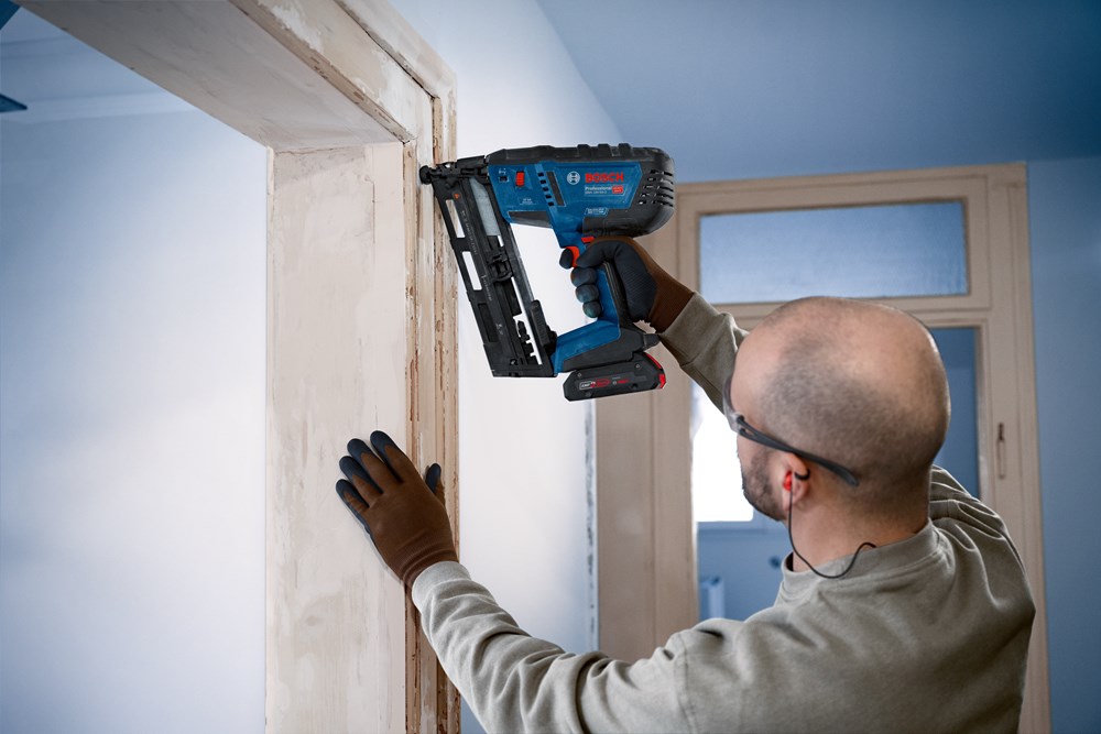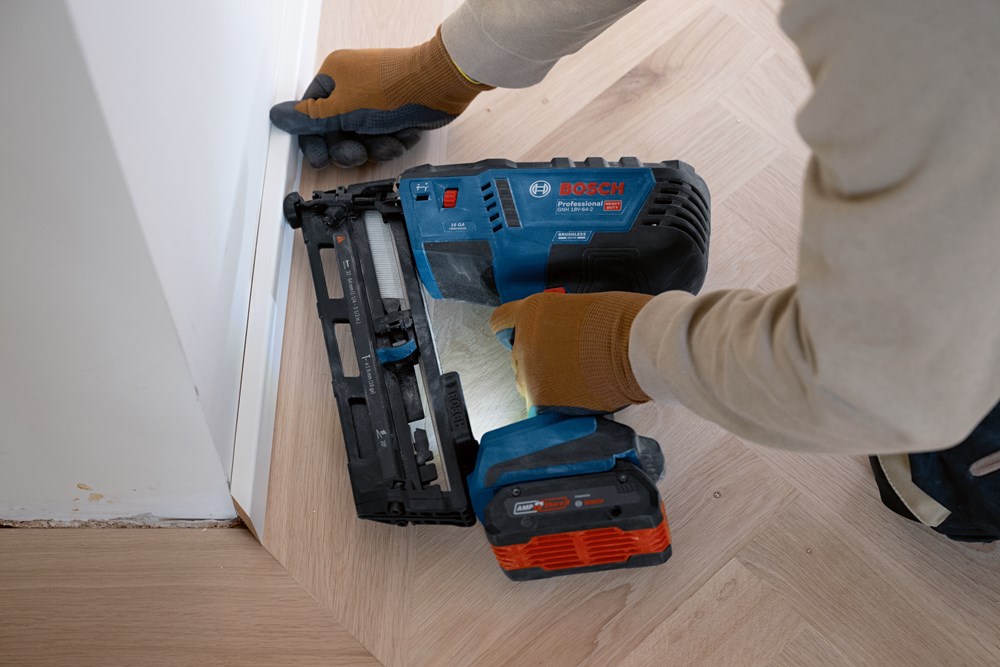 Ideaal voor het bevestigen van raam- en deurkozijnen, het bevestigen van kroonlijsten, het monteren van balusters aan trapbalustrades, het monteren van plafond- en vloerpanelen met messing-en-groefsysteem (blind spijkeren) en het bevestigen van lambriseringen en plinten. Compatibel met het Bosch Professional 18V System en met AMPShare, het accuplatform van meerdere merken.